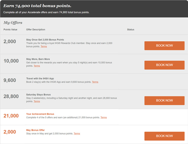 - Travel with the IHG® App – 使用App预订两次获得9600分